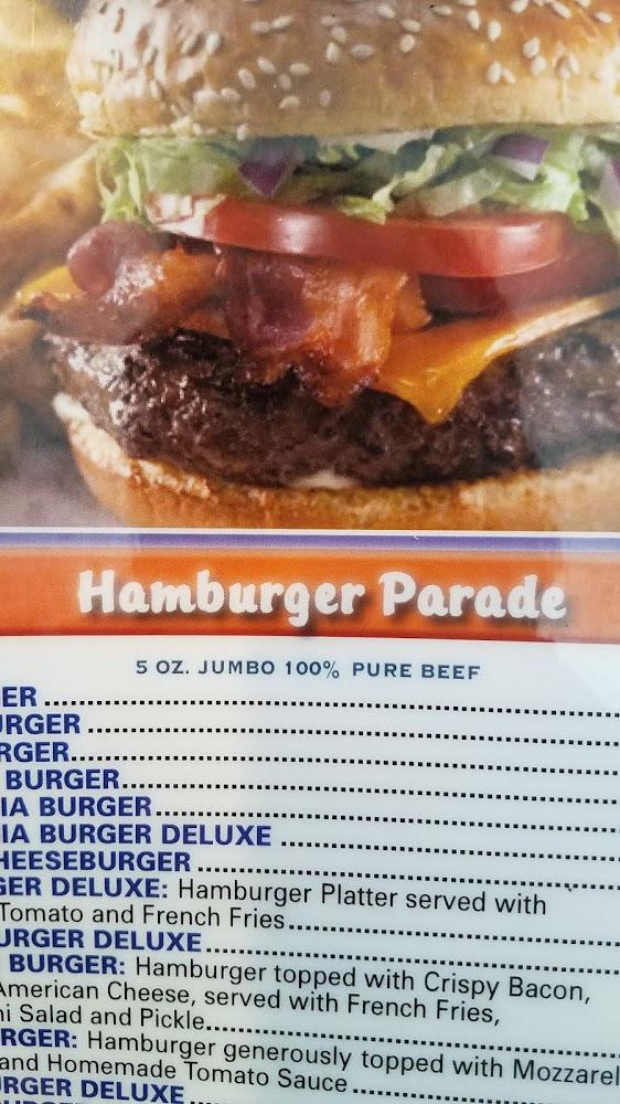 Hamburger topped with pork roll and cheddar cheese. Deluxe.